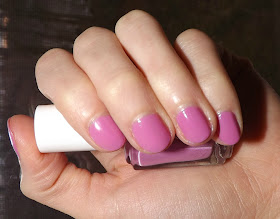 Essie's "Splash of Grenadine" is this gorgeous purply-pink color, which is perfect for Springtime! I adored the color in the bottle but once it was on my nails I really fell in love with it! It is purple, it is pink, and it is super pretty on my finger nails! I was a bit worried about the application, because in the past Essie has not always been the easiest for me but "Splash of Grenadine" surprised me and went on super easily! "Splash of Grenadine" left not streaks and went on in nice even coats! And to make me love "Splash of Grenadine" even more the nail polish was completely opaque in just two coats, which always makes me happy! As for chipping some very minor tip chips started on the second day. However as the days passed this chipping did not get any worse. I ended up wearing Essie's "Splash of Grenadine" for five days! I was very impressed with how long "Splash of Grenadine" lasted because my previous experience with Essie is that it chips horribly off my nails! So I was very pleased to find an Essie nail polish that didn't chip off quickly!